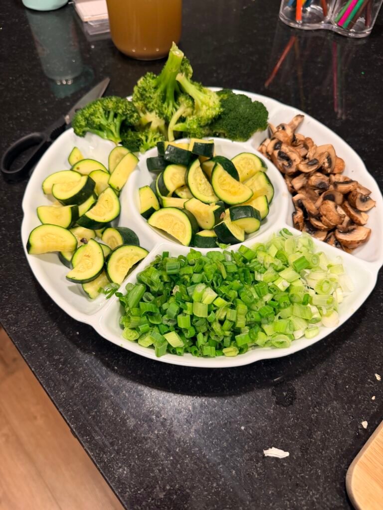 I steamed the veggies, cooked the noods and created made-to-order noodle bowls for the boys.